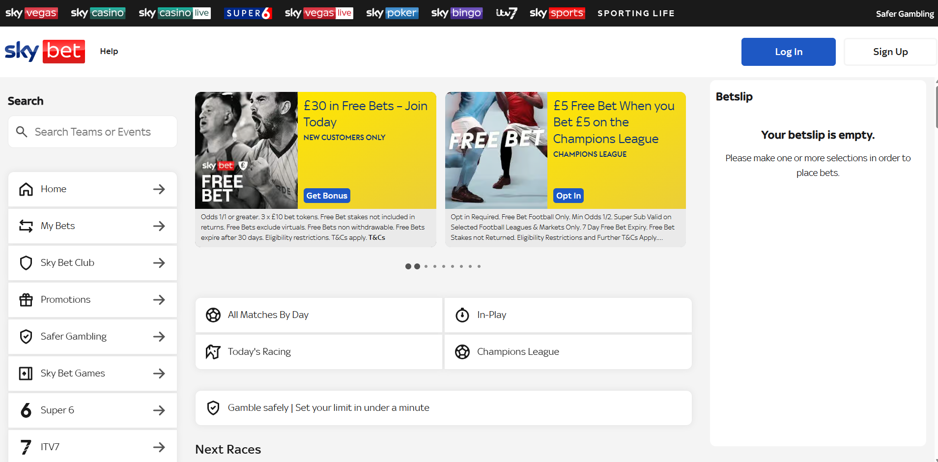 | Sky Bet | Get £30 in free bets | £5 | Debit cards, PayPal | Gibraltar or Non‑UK |