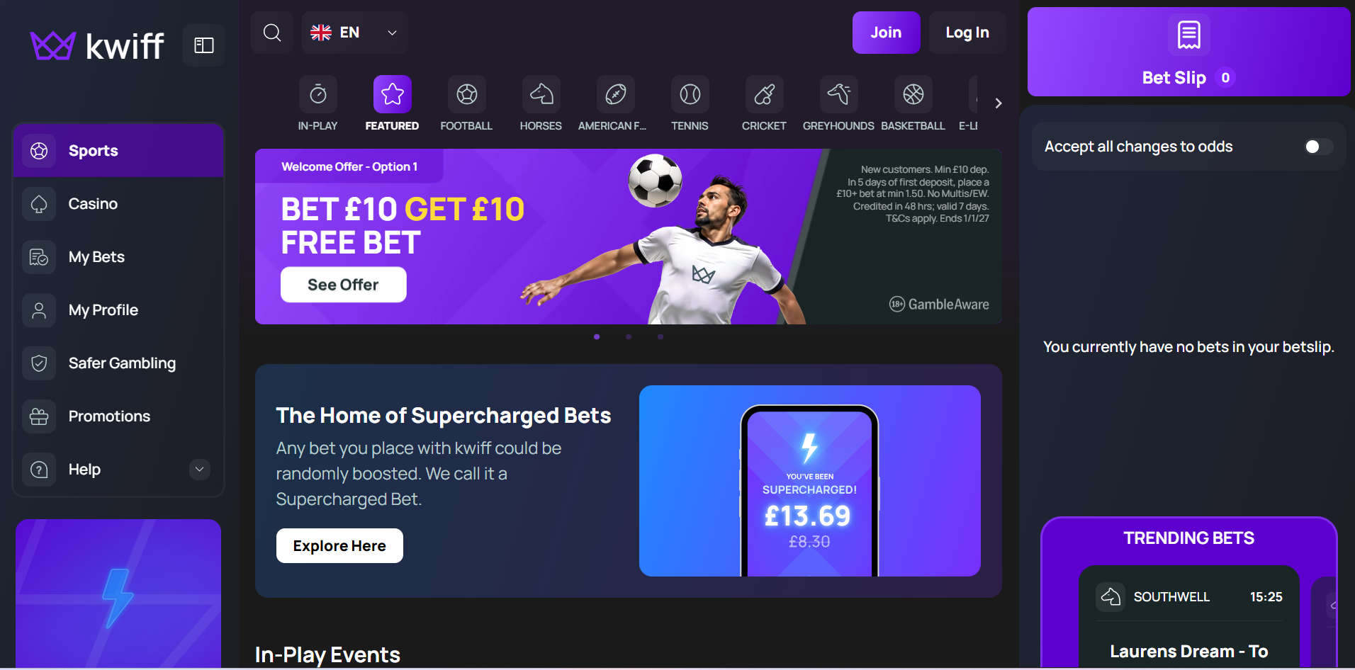 Kwiff is a young and dynamic betting site that sets itself apart with a simple yet exciting approach to sports wagering. Right from the start, the platform feels fresh and easy to use, with a clear focus on delivering value quickly and intuitively. Its mobile-first design makes placing bets on the go effortless, and the overall experience is smooth whether you’re a casual bettor or more experienced punter looking for fast action.